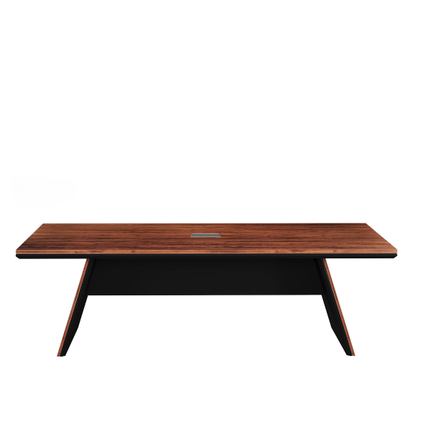 Bàn họp gỗ công nghiệp cao cấp phủ melamine, chân bàn vát nghiêng kết hợp ốp sơn đen. Mặt bàn có 1 nắp hộp điện.