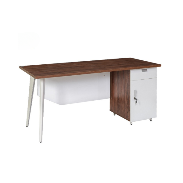 Bàn làm việc hộc liền sử dụng khung thép dập định hình sơn tĩnh điện. Mặt bàn gỗ melamine cao cấp, yếm bàn sơn PU.